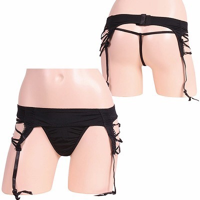 サイド編み上げガーター&Tバックセット ブラック