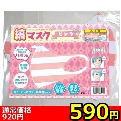 【590円★数量限定】縞マスク (ピンク)<お一人様1点限り> ピンク