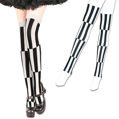 切り替えストライプ柄ニーハイストッキング 色白×黒