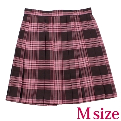 ポケット付きのチェック柄プリーツスカート単品 ピンク×ブラウン Mサイズ ピンク/ブラウン