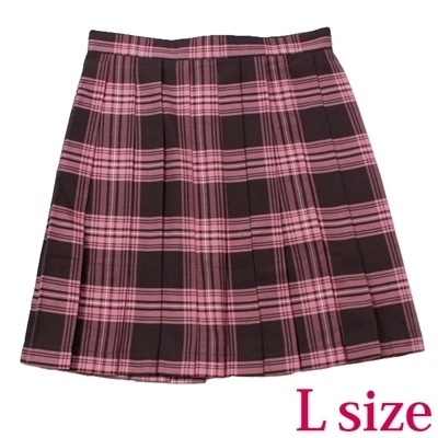 ポケット付きのチェック柄プリーツスカート単品 ピンク×ブラウン Lサイズ ピンク/ブラウン