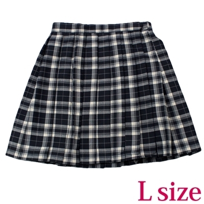 ポケット付きのチェック柄プリーツスカート単品 濃紺×クリーム Lサイズ 濃紺/クリーム