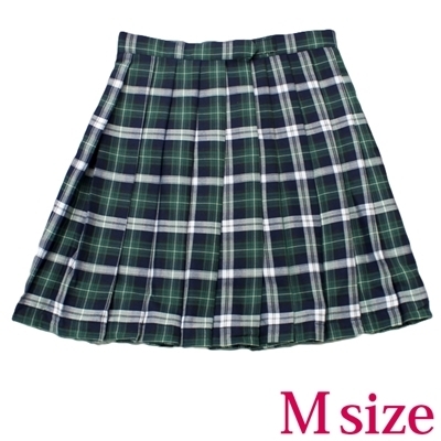 ポケット付きのチェック柄プリーツスカート単品 緑×白 Mサイズ 緑/白