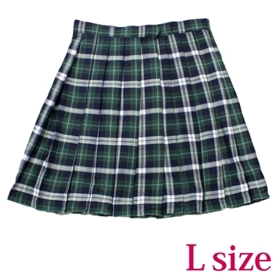 ポケット付きのチェック柄プリーツスカート単品 緑×白 Lサイズ 緑/白