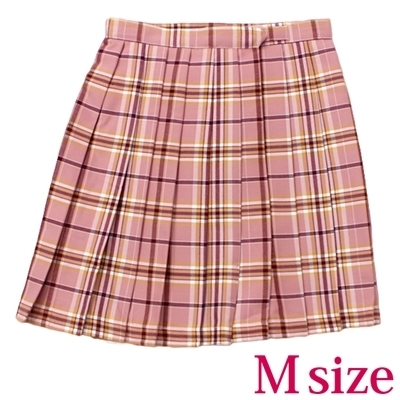ポケット付きのチェック柄プリーツスカート単品 ピンク×キャメル Mサイズ ピンク/キャメル
